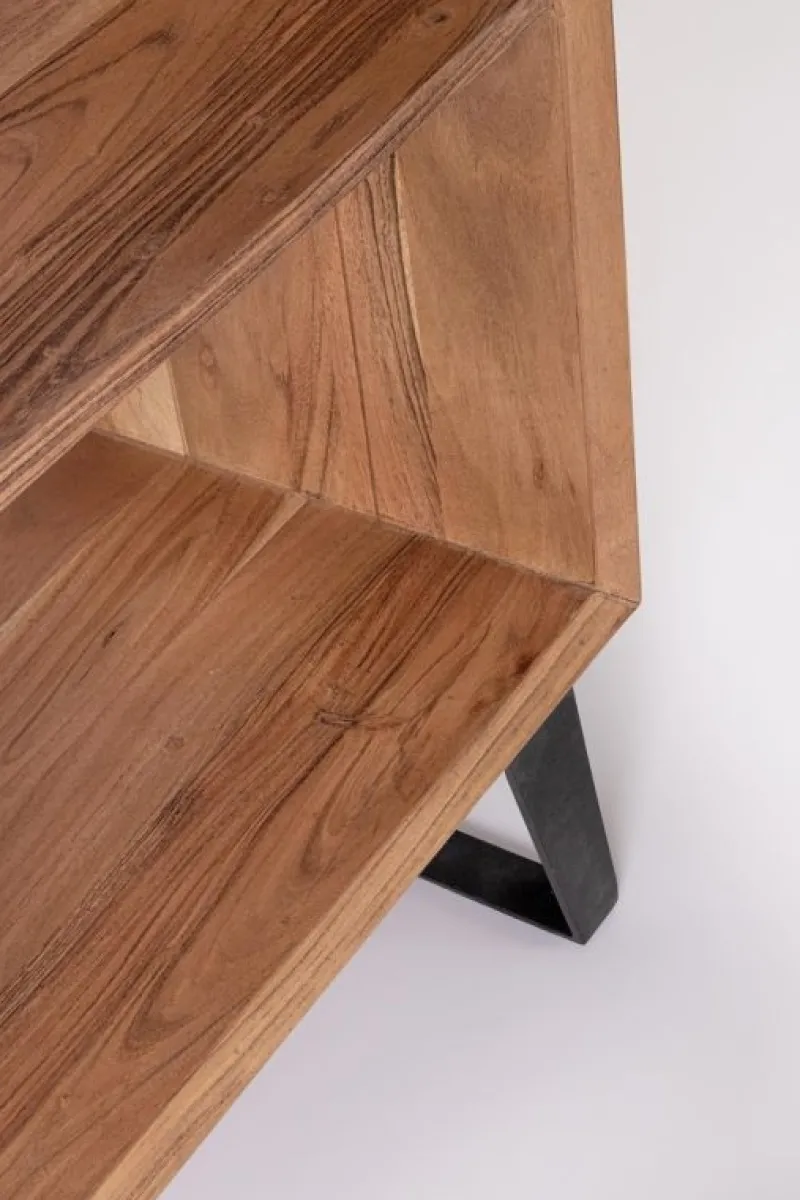 STRUTTURA IN LEGNO DI ACACIA, SCHIENALI IN COMPENSATO. FRONTALI ANTE INTARSIATI E LAVORATI A MANO. FINITURA ACRILICA PROTETTIVA. MANIGLIE E GAMBE IN ACCIAIO. GAMBE DA ASSEMBLARE.