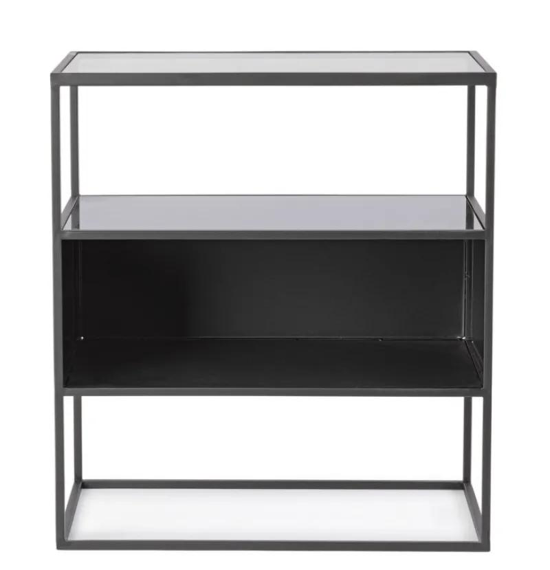 STRUTTURA IN ACCIAIO VERNICIATA A POLVERE EPOSSIDICA. DUE PIANI IN VETRO TEMPERATO, UN PIANO IN ACCIAIO.