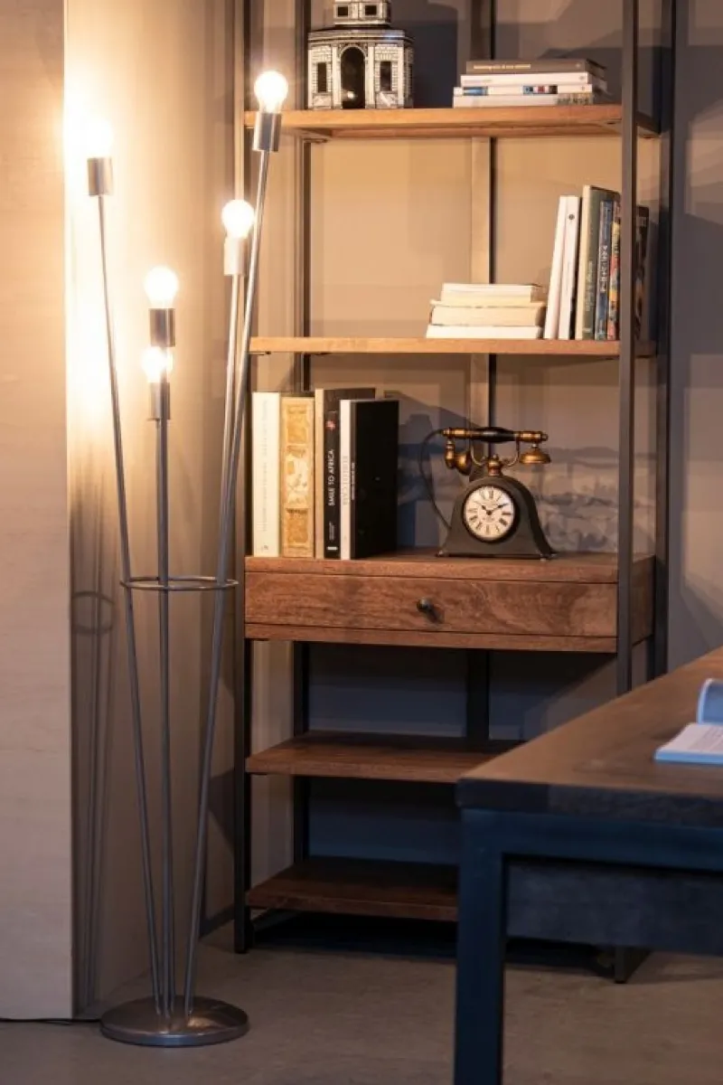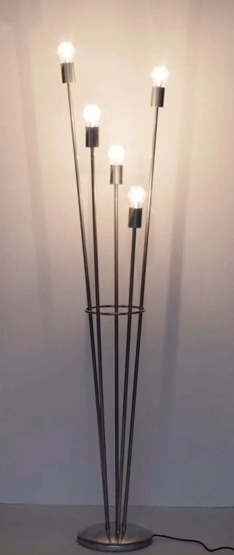ACCIAIO VERNICIATO A POLVERE EPOSSIDICA. LAMP. (5X) E27 MAX 60W, E27 11W COMP. FLUOR INTEGR. RISP. EN., E27 42W ALOG. RISP. EN. LAMPADINA/E NON INCLUSA/E. LUNGHEZZA TOTALE CAVO 1.75MT. DISTANZA TRA LAMPADA E INTERRUTTORE: 75CM. DA ASSEMBLARE