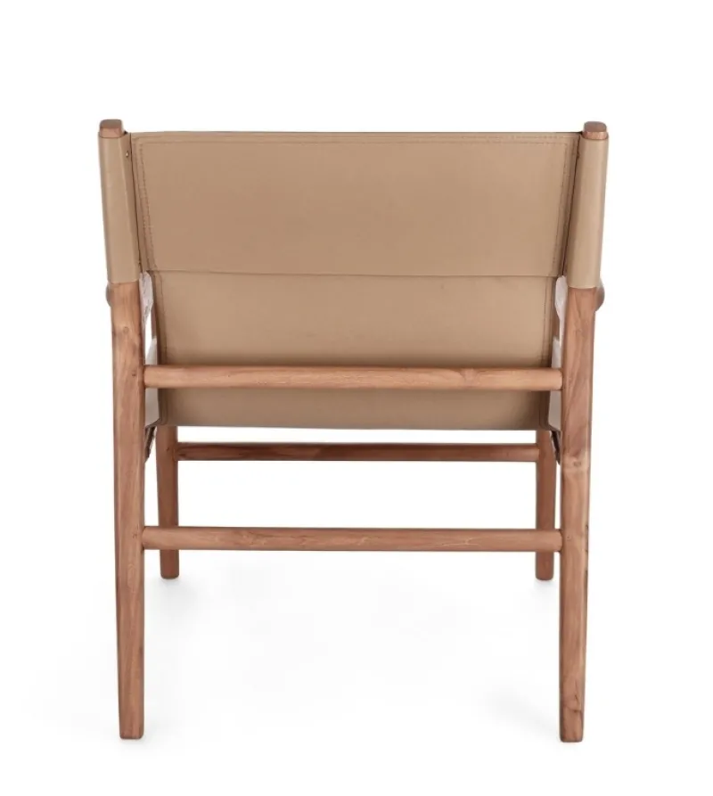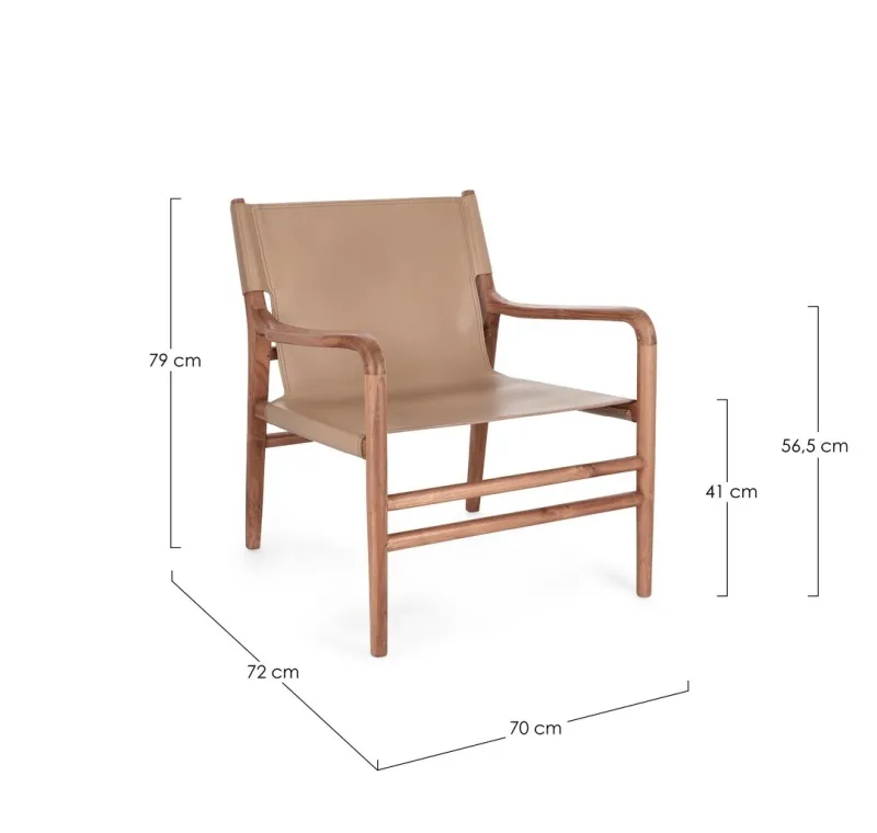 LEGNO TEAK, FINITURA CON VERNICE A BASE D’ACQUA. SEDUTA E SCHIENALE RIVESTITI IN VERA PELLE (PIENO FIORE).