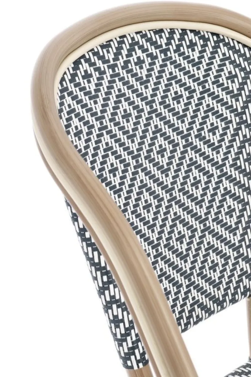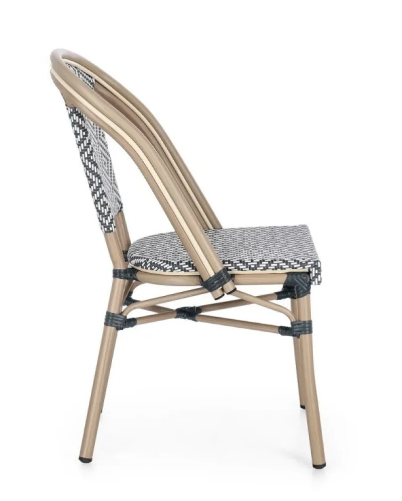 STRUTTURA IN ALLUMINIO VERNICIATA A POLVERE (POLIESTERE), EFFETTO NATURALE. SEDUTA E SCHIENALE IN TEXTILENE. IMPILABILE. IMBALLO SENZA CARTONE.