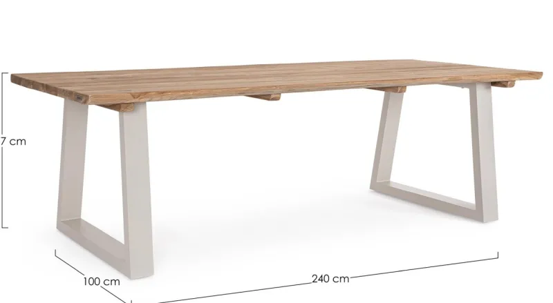 PIANO IN LEGNO TEAK (SEZIONI ORIGINALI DI TRONCO) – SVLK (LEGNO CERTIFICATO PROVENIENTE DA FORESTE SOSTENIBILI). FINITURA NATURALE. GAMBE IN ALLUMINIO VERNICIATE A POLVERE (POLIESTERE). VITERIA IN ACCIAIO INOSSIDABILE. PIEDINI REGOLABILI. QUESTO PRODOTTO È CARATTERIZZATO DALLA PRESENZA DI TASSELLI IN LEGNO DELLA STESSA NATURA. EVENTUALI FESSURE, CREPE O IMPERFEZIONI, CHE POSSONO GENERARSI ANCHE NEL CORSO DEL TEMPO, SONO CARATTERISTICHE DI QUESTO MATERIALE E RENDONO OGNI PEZZO UNICO E ORIGINALE. GAMBE DA ASSEMBLARE. ATTENZIONE CODICE IN ABBINAMENTO.