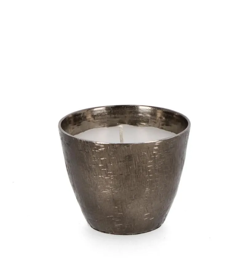 ALLUMINIO LAVORATO ARTIGIANALMENTE E CERA ROSA PALLIDO (320 GR). PRODOTTO FATTO A MANO. EVENTUALI VARIAZIONI DI COLORE, TONALITÀ O IMPERFEZIONI SONO DA CONSIDERARSI UNA CARATTERISTICA DI UNICITÀ.