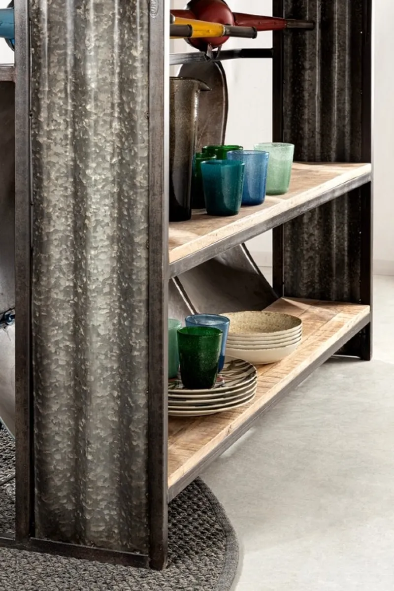 STRUTTURA IN ACCIAIO. PIANO IN LEGNO DI MANGO. TRATTANDOSI DI PRODUZIONE ARTIGIANALE OGNI MODELLO PUO’ VARIARE IN PICCOLI PARTICOLARI COSTRUTTIVI. EVENTUALI PICCOLE CREPE O SPACCATURE SONO DA RITENERSI CARATTERISTICHE PROPRIE AL NATURALE LAVORO DI RECUPERO.