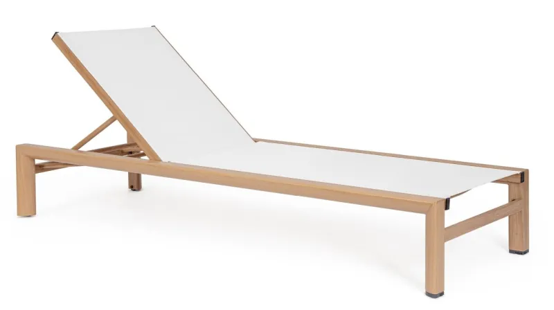 STRUTTURA IN ALLUMINIO, VERNICIATO A POLVERE (POLIESTERE) EFFETTO LEGNO. SEDUTA E SCHIENALE RIVESTITI IN TEXTILENE 2X1. SCHIENALE RECLINABILE (4 POSIZIONI). VITERIA IN ACCIAIO INOSSIDABILE. DA ASSEMBLARE.