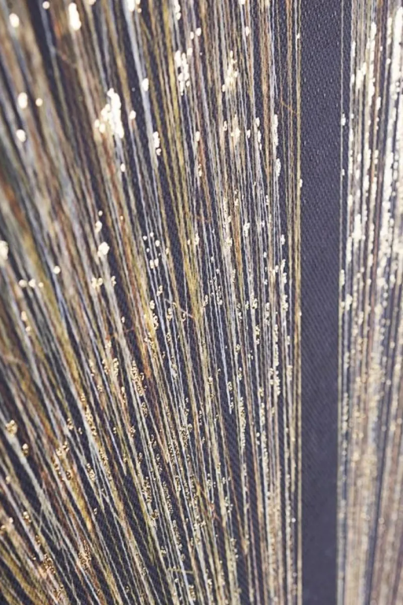 STAMPA SU TELA CON APPLICAZIONI FOGLI DORATI, LEGNO DI PINO.