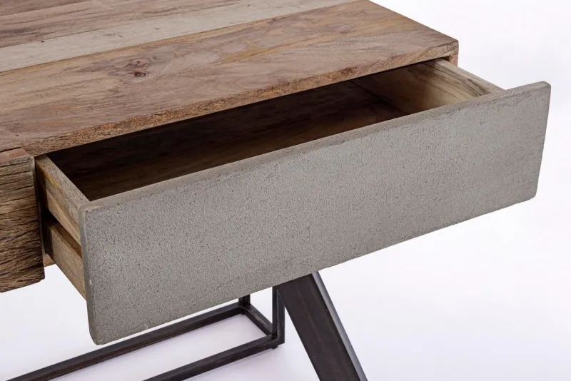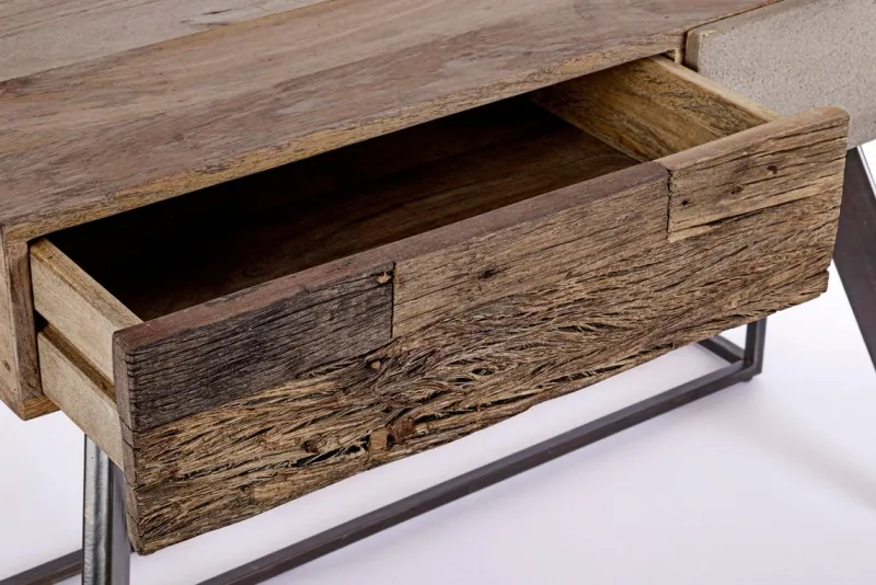 STRUTTURA IN LEGNO MANGO ED ACCIAIO, SCHIENALE IN COMPENSATO. FRONTALE ANTE E CASSETTI IN LEGNO RICICLATO O LAMINA DI ACCIAIO O FINITURA IN FIBRA DI CEMENTO. FINITURA ACRILICA PROTETTIVA. PIEDINI REGOLABILI. IL PRODOTTO IN LEGNO RICICLATO È CARATTERIZZATO DALLA PRESENZA DI TASSELLI IN LEGNO DI DIVERSE SPECIE E COLORE. EVENTUALI FESSURE, CREPE O IMPERFEZIONI, CHE POSSONO