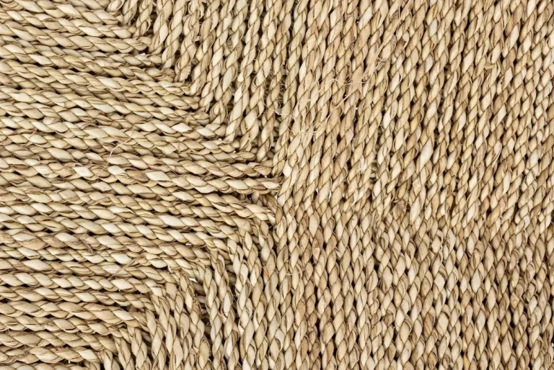STRUTTURA IN RAMI DI TEAK, FINITURA NATURALE. SEDUTA RIVESTITA CON INTRECCIO IN FIBRA NATURALE (GIACINTO ACQUATICO).