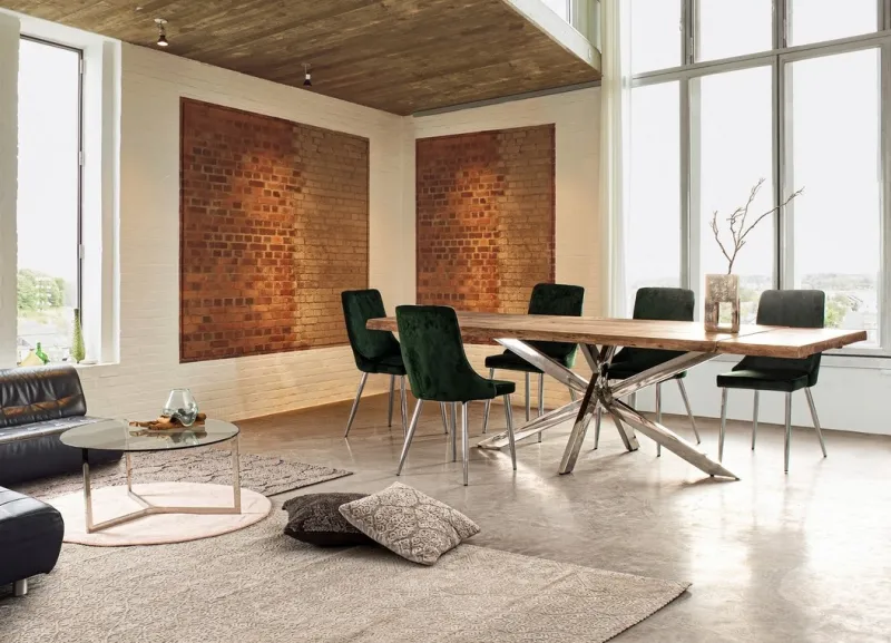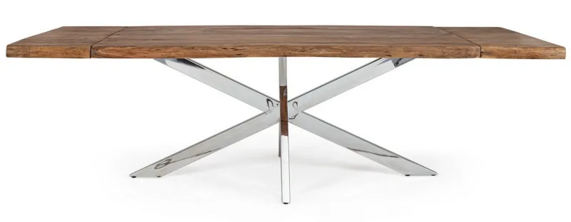 GAMBE IN ACCIAIO INOSSIDABILE, PIANO IN LEGNO D’ACACIA (SEZIONI ORIGINALI DI TRONCO). FINITURA ACRILICA PROTETTIVA. 2 PROLUNGHE ESTERNE DA 40CM. ESSENDO UN PIANO LAVORATO A MANO, LE FORME E LE MISURE DEL LEGNO SONO SOLO INDICATIVE. TUTTI I PRODOTTI SARANNO DIVERSI L’UNO DALL’ALTRO. GAMBE DA ASSEMBLARE.