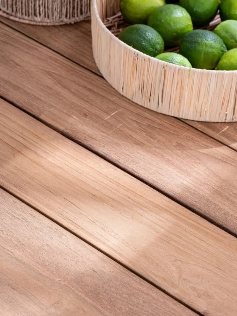 PIANO E GAMBE IN LEGNO TEAK RICICLATO – SVLK (LEGNO CERTIFICATO PROVENIENTE DA FORESTE SOSTENIBILI). PIANO CON FINITURA NATURALE SPAZZOLATA. GAMBE CON FINITURA RUSTICA CON VERNICE A BASE ACRILICA. VITERIA IN ACCIAIO INOSSIDABILE. IL PRODOTTO IN LEGNO RICICLATO È CARATTERIZZATO DALLA PRESENZA DI TASSELLI IN LEGNO DI DIVERSE SPECIE E COLORE. EVENTUALI FESSURE, CREPE O IMPERFEZIONI, CHE POSSONO GENERARSI ANCHE NEL CORSO DEL TEMPO, SONO CARATTERISTICHE DI QUESTO MATERIALE E RENDONO OGNI PEZZO UNICO E ORIGINALE. GAMBE DA ASSEMBLARE. ATTENZIONE CODICE IN ABBINAMENTO.