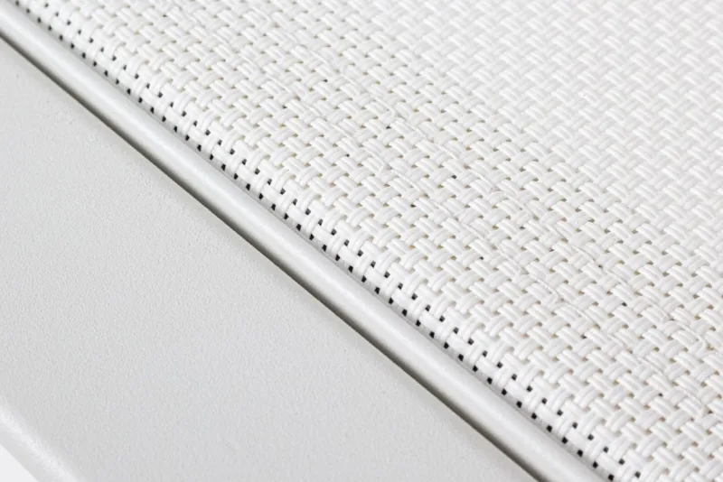 STRUTTURA IN ALLUMINIO, VERNICIATO A POLVERE (POLIESTERE). SEDUTA E SCHIENALE RIVESTITI IN TEXTILENE PHIFER 2X2. RUOTE IN PLASTICA E VITERIA IN ACCIAIO INOSSIDABILE. SCHIENALE RECLINABILE (4 POSIZIONI).