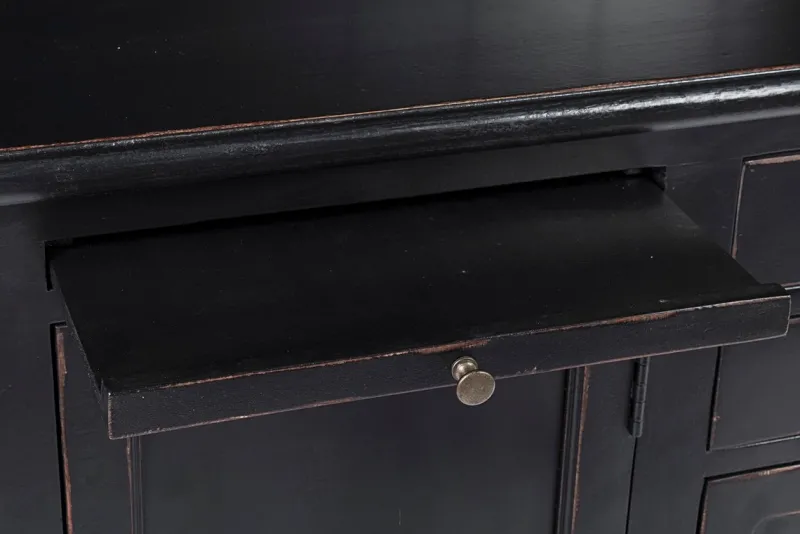 STRUTTURA IN LEGNO DI MANGO, SCHIENALI E LATERALI IN MDF. SCALA DECORATIVA IN MANGO. FINITURA DECAPATA ED ANTICATA A BASE DI NITROCELLULOSA. MANIGLIE IN GHISA.