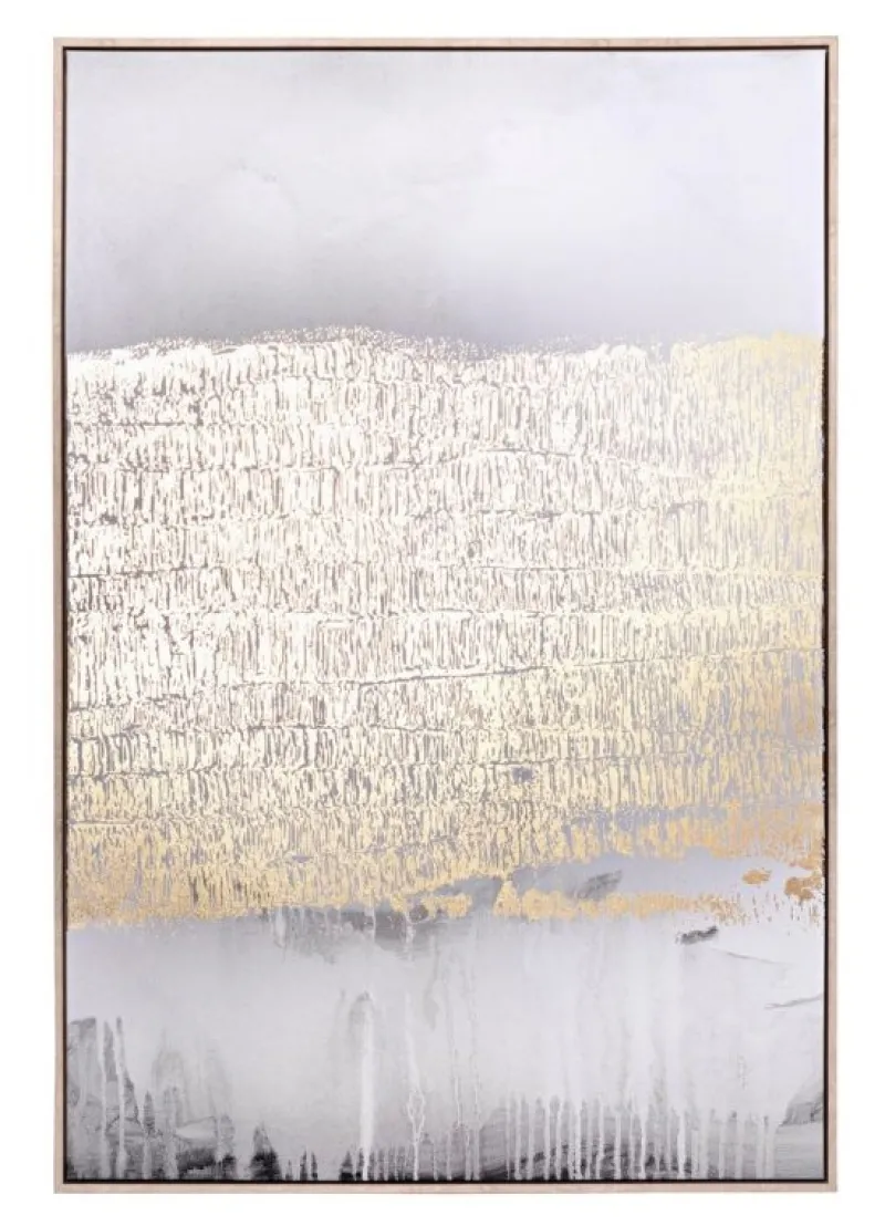 STAMPA SU TELA CON APPLICAZIONI AD OLIO E FOGLI DORATI, MDF.