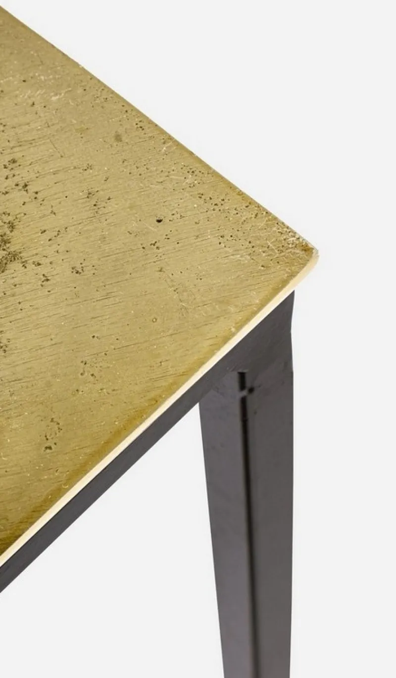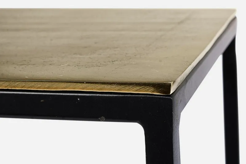 STRUTTURA IN ACCIAIO VERNICIATA A POLVERE EPOSSIDICA. PIANO IN ALLUMINIO CON FINITURA PLACCATA OTTONE ED ANTICATA.