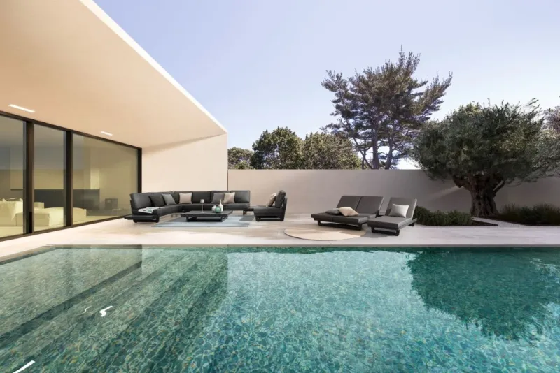 STRUTTURA IN ALLUMINIO VERNICIATO A POLVERE (POLIESTERE). CUSCINO SFODERABILE IN TESSUTO IDROREPELLENTE OLEFIN (100% POLIPROPILENE). SCHIENALE RECLINABILE (5 POSIZIONI). RUOTE IN ALLUMINIO RIVESTITE IN GOMMA.