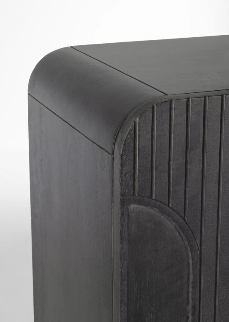 STRUTTURA IN LEGNO DI MANGO, SCHIENALE IN MDF. FINITURA A BASE DI NITROCELLULOSA. BASE GAMBE IN ACCIAIO VERNICIATO A POLVERE EPOSSIDICA. VANO PORTA COMPRENSIVO DI MENSOLA. GAMBE DA ASSEMBLARE.