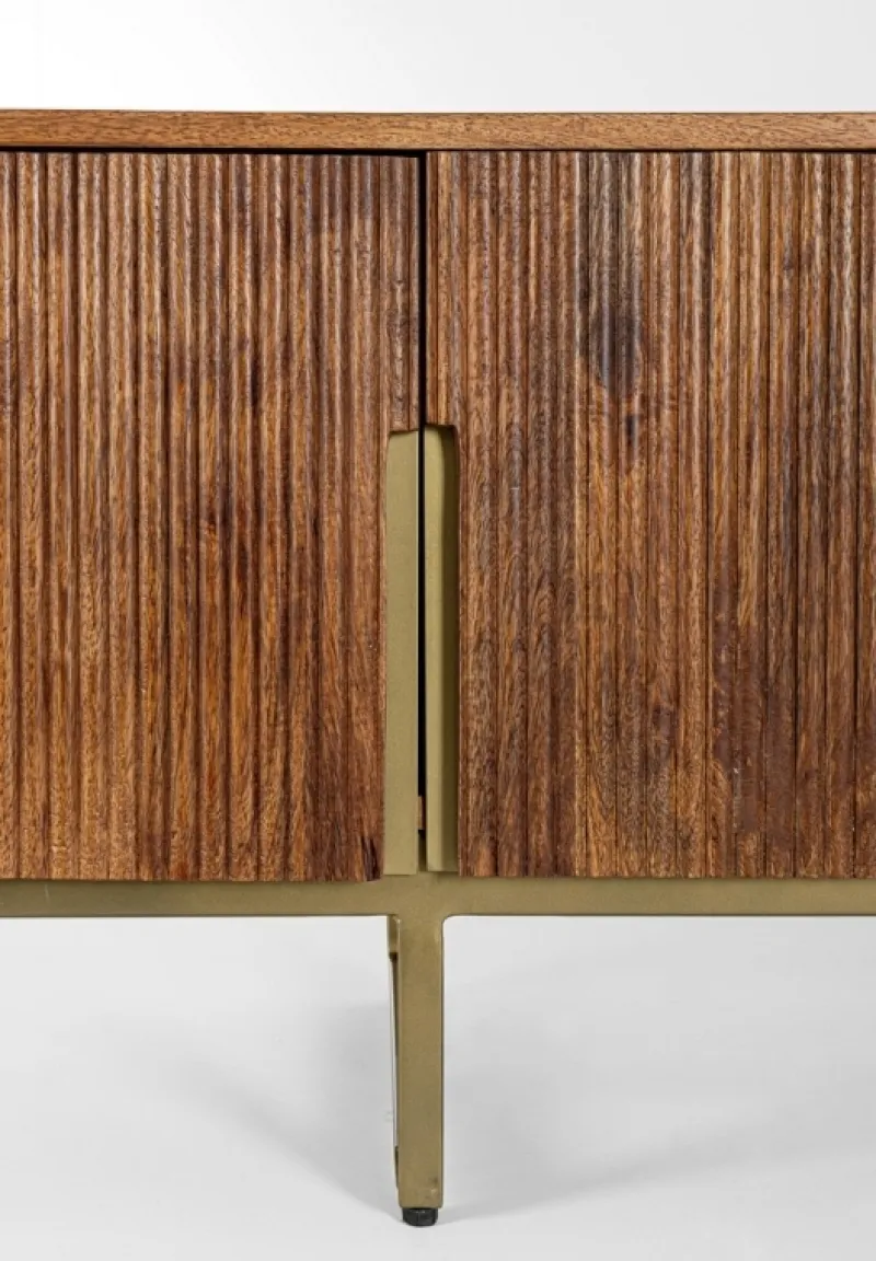 STRUTTURA IN LEGNO DI MANGO. FINITURA CON VERNICE A BASE DI NITROCELLULOSA. SCHIENALI IN MDF. GAMBE E MANIGLIE IN ACCIAIO VERNICIATO A POLVERE EPOSSIDICA. GAMBE DA ASSEMBLARE.