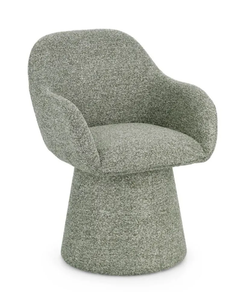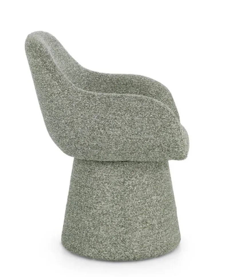 STRUTTURA IN ACCIAIO E COMPENSATO. RIVESTIMENTO IN 100% POLIESTERE EFFETTO BOUCLE. IMBOTTITURA IN SCHIUMA POLIURETANICA DENSITA’ SEDUTA 28KG/M3 SCHIENALE 24KG/M3. GIREVOLE 360°