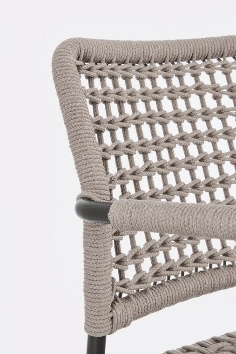 STRUTTURA IN ALLUMINIO VERNICIATA A POLVERE (POLIESTERE). INTRECCIO PER ESTERNO IN CORDA POLIESTERE. IMPILABILE.