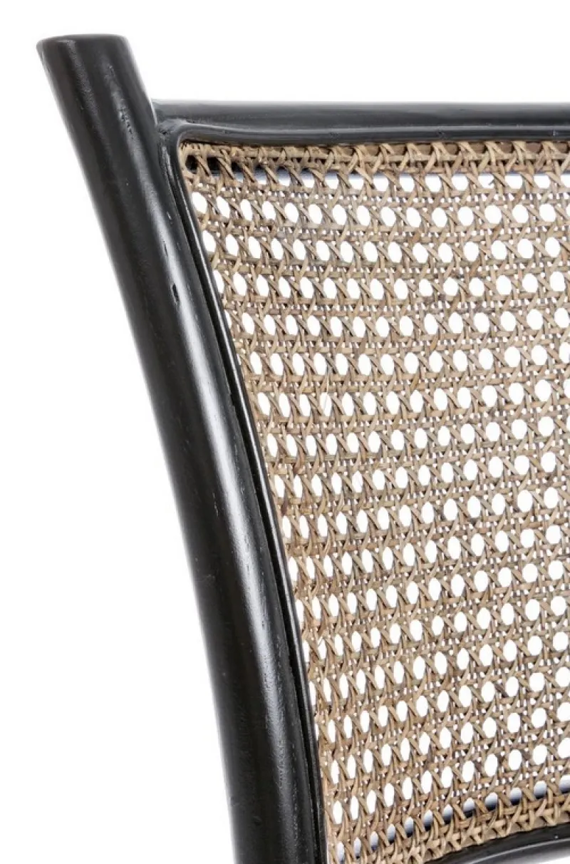 STRUTTURA IN LEGNO DI OLMO, SCHIENALE E SEDUTA IMBOTTITA RIVESTITE IN RATTAN NATURALE, FINITURA POLIURETANICA. IMBALLO SENZA CARTONE.