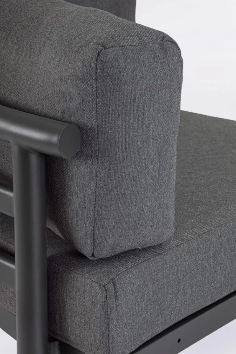 STRUTTURA IN ALLUMINIO VERNICIATO A POLVERE (POLIESTERE). CUSCINI SEDUTA E SCHIENALE SFODERABILI IN TESSUTO IDROREPELLENTE OLEFIN (100% POLIPROPILENE). PIEDINI REGOLABILI. GAMBE ANGOLARE E TAVOLINO (VITERIA IN ACCIAIO INOSSIDABILE) DA ASSEMBLARE.