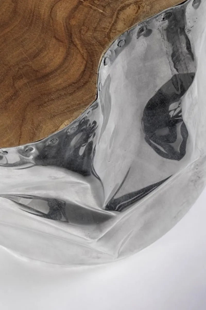 STRUTTURA IN ALLUMINIO. PIANO IN RADICI DI TEAK ORIGINALI. FINITURA A BASE DI NITROCELLULOSA. LE FORME ORIGINALI CREATE DAL LEGNO SONO SOLO INDICATIVE, TUTTI I PRODOTTI SARANNO DIVERSI L’UNO ALL’ALTRO, CON MISURE LEGGERMENTE DIFFERENTI.