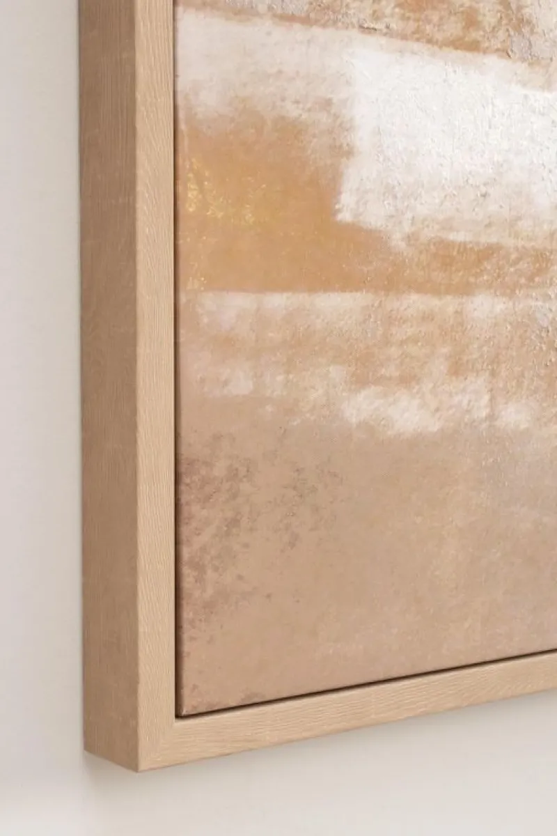 STAMPA SU TELA DIPINTA A MANO CON APPLICAZIONI FOGLI DORATI. CORNICE IN PLASTICA. TELAIO IN MDF.