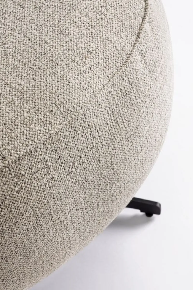 STRUTTURA IN COMPENSATO ED ACCIAIO RIVESTITA IN POLIESTERE EFFETTO CINIGLIA . BASE DIAM 795 MM CON GAMBE IN ACCIAIO VERNICIATO A POLVERE E SEDUTA GIREVOLE 360° IMBOTTITURA IN SCHIUMA POLIURETANICA DENSITA’ 20-29 KG/M3. DA ASSEMBLARE.