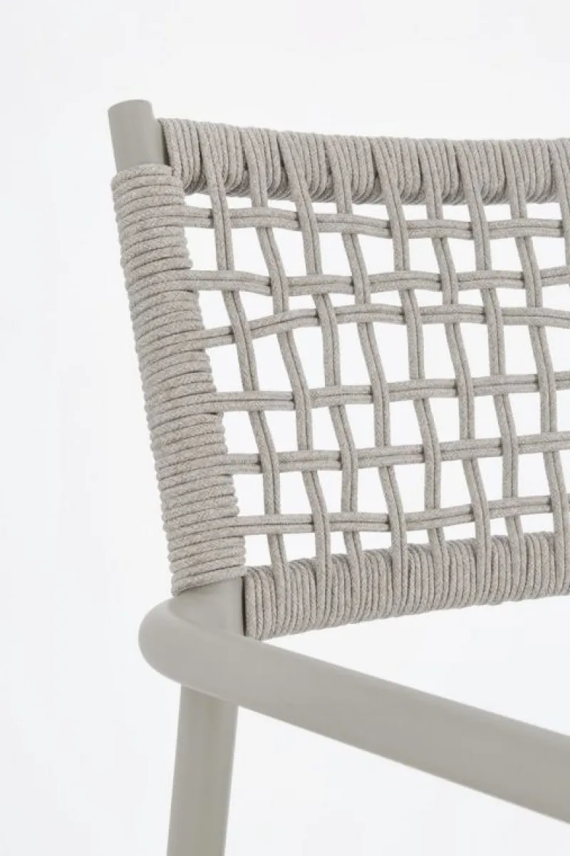 STRUTTURA IN ALLUMINIO VERNICIATA A POLVERE (POLIESTERE). INTRECCIO PER ESTERNO IN CORDA POLIESTERE. IMBALLO SENZA CARTONE.