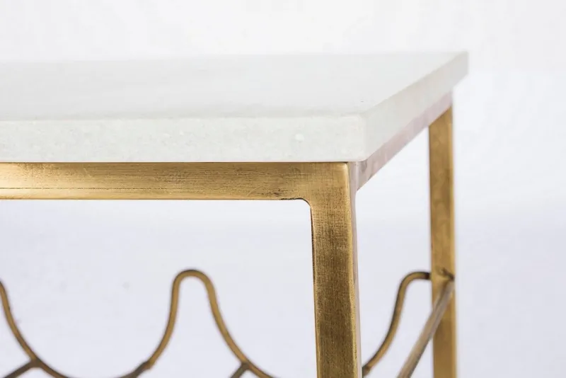 STRUTTURA IN ACCIAIO CON FINITURA OTTONATA. PIANO IN MARMO.COMPRENSIVO DI PORTABOTTIGLIE