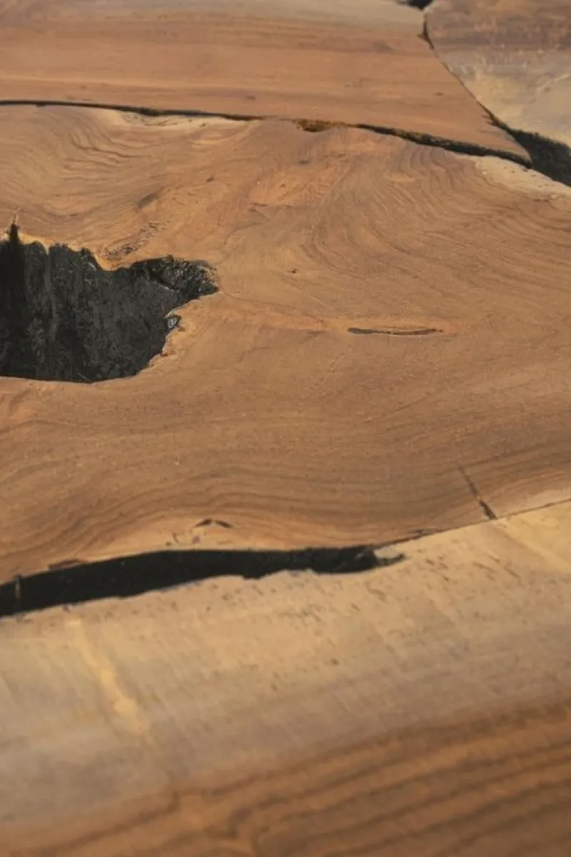 PIANO IN RADICI DI TEAK ORIGINALI. FINITURA A BASE DI NITROCELLULOSA. GAMBE IN ACCIAIO VERNICIATO. LE FORME ORIGINALI CREATE DAL LEGNO SONO SOLO INDICATIVE, TUTTI I PRODOTTI SARANNO DIVERSI L’UNO ALL’ALTRO, CON MISURE LEGGERMENTE DIFFERENTI. GAMBE DA ASSEMBLARE.