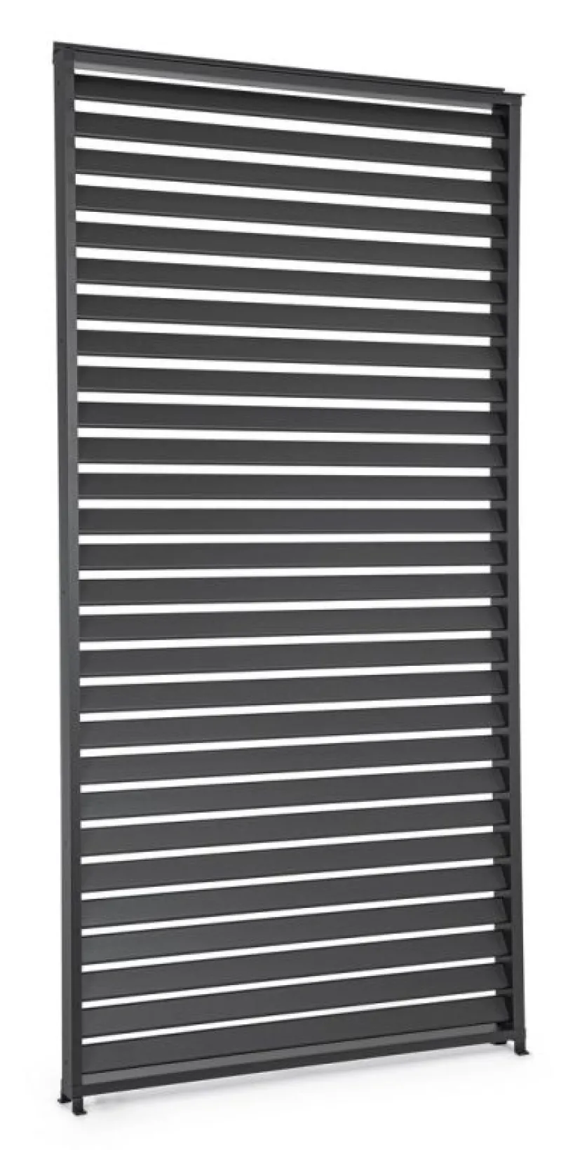 ALLUMINIO VERNICIATO A POLVERE (POLIESTERE). PALI PORTANTI 60X25MM, LAME FRANGISOLE FISSE 65X15MM. SISTEMA DI FISSAGGIO ALLA PERGOLA CON VITI AUTO-FORANTI. L’ARTICOLO PUO’ ESSERE USATO IN MODO MODULARE PER POTER RIEMPIRE UN INTERO LATO DA 4M OPPURE A COPERTURA DI UN SOLO ANGOLO. VITERIA IN ACCIAIO INOSSIDABILE. DA ASSEMBLARE.