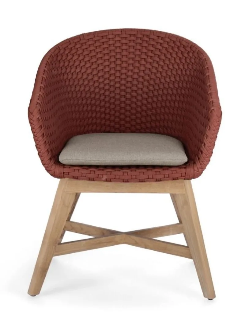 SEDUTA CON STRUTTURA IN ALLUMINIO VERNICIATA A POLVERE (POLIESTERE). INTRECCIO IN CORDA OLEFIN (100% POLIPROPILENE). CUSCINO SEDUTA SFODERABILE IN TESSUTO IDROREPELLENTE SUNPROOF OLEFIN (100% POLIPROPILENE). GAMBE IN TEAK – SVLK (LEGNO CERTIFICATO PROVENIENTE DA FORESTE SOSTENIBILI). VITERIA IN ACCIAIO GALVANIZZATO. GAMBE DA ASSEMBLARE. ATTENZIONE: PRIMA DI PROCEDERE AL MONTAGGIO, ASSICURARSI CHE LA NUMERAZIONE SEDUTA-GAMBE COINCIDA.