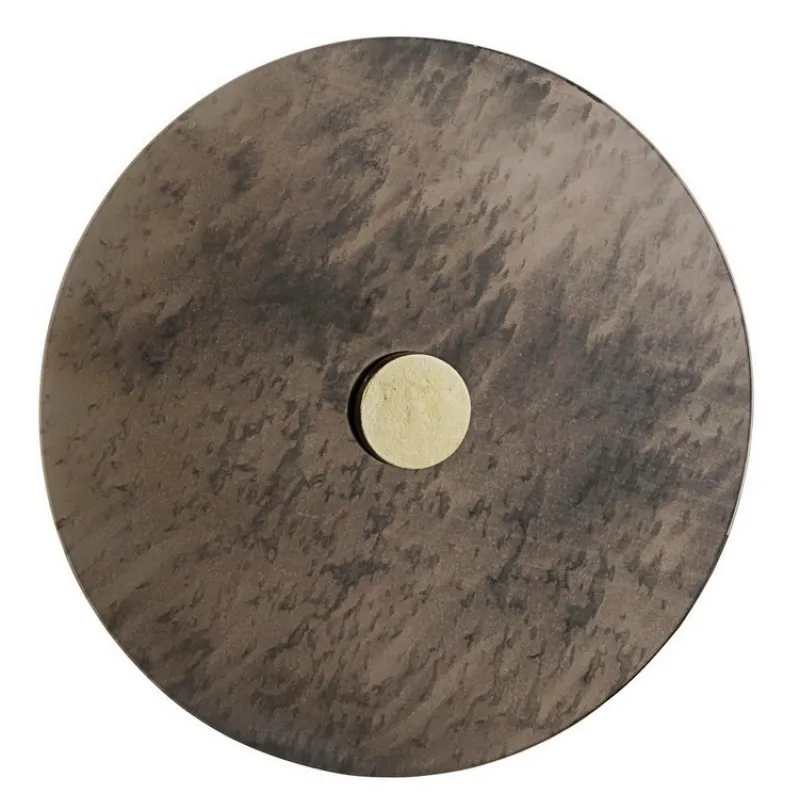 STRUTTURA IN ALLUMINIO CON FINITURA OTTONATA. PIANO IN VETRO. GAMBA DA ASSEMBLARE.