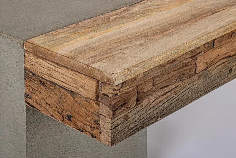GAMBE IN ACCIAIO CON PIEDINI REGOLABILI, PIANO IN LEGNO DI MANGO E LEGNO RICICLATO. FINITURA ACRILICA PROTETTIVA. IL PRODOTTO IN LEGNO RICICLATO È CARATTERIZZATO DALLA PRESENZA DI TASSELLI IN LEGNO DI DIVERSE SPECIE E COLORE. EVENTUALI FESSURE, CREPE O IMPERFEZIONI, CHE POSSONO GENERARSI ANCHE NEL CORSO DEL TEMPO, SONO CARATTERISTICHE DI QUESTO MATERIALE E