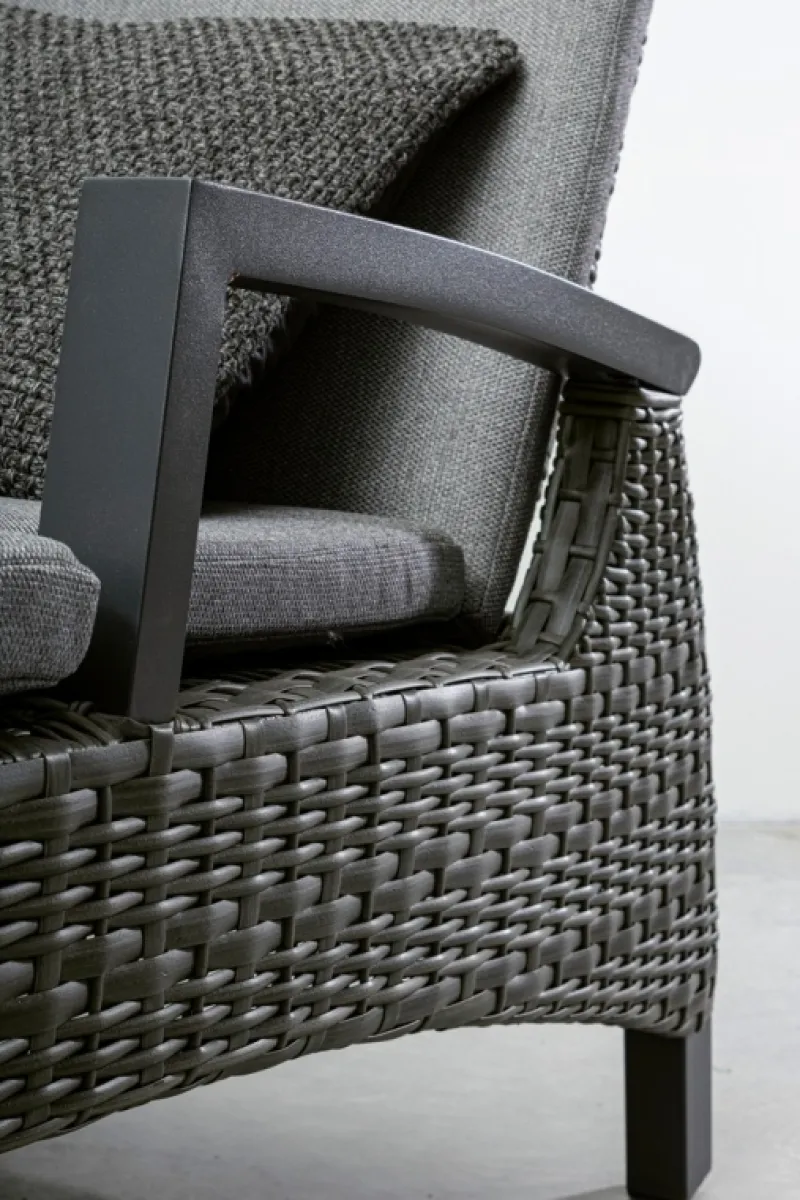 STRUTTURA IN ALLUMINIO, VERNICIATA A POLVERE (POLIESTERE), INTRECCIO IN FIBRA SINTETICA (MULTI-MISURA). SCHIENALE RECLINABILE IN LIBERA POSIZIONE. CUSCINI SFODERABILI CON TESSUTO OLEFIN (100% POLIPROPILENE). VITERIA IN ACCIAIO INOSSIDABILE. SCHIENALE DA ASSEMBLARE.