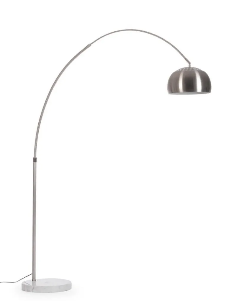 STRUTTURA IN METALLO FINITURA NICHEL LUCIDO. PARALUME IN METALLO FINITURA NICHEL LUCIDO, DIAM. 32 CM. BASE IN MARMO BIANCO, DIAM. 45 CM. LAMP: E27 MAX 60W, E27 11W COMP. FLUOR. INTEGR. RISP. EN., E27 42W ALOG. RISP. EN. LAMPADINA NON INCLUSA. LUNGHEZZA CAVO NERO: 1,8 MT. DISTANZA TRA LAMPADA E INTERRUTTORE: 100 CM. IP20. DA ASSEMBLARE.