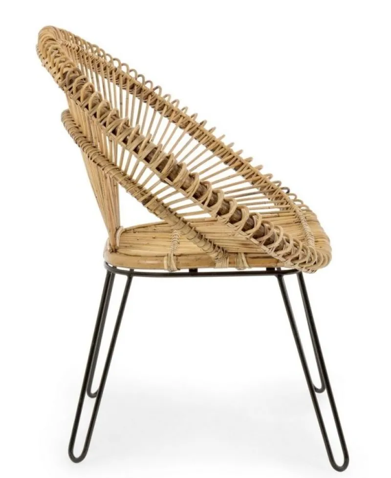 SEDUTA IN RATTAN ED INTRECCIO IN KUBU. RIFINITURA CON VERNICE MELAMINICA. GAMBE IN ACCIAIO VERNICIATE A POLVERE EPOSSIDICA. SI RACCOMANDA DI NON ESPORRE L’ARTICOLO ALLA LUCE DIRETTA DEL SOLE ED ALLE INTEMPERIE. GAMBE DA ASSEMBLARE.