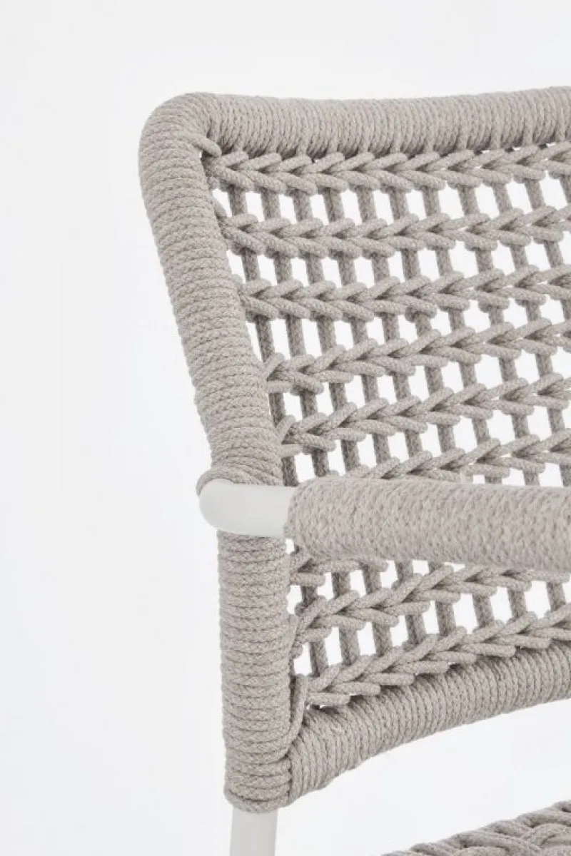 STRUTTURA IN ALLUMINIO VERNICIATA A POLVERE (POLIESTERE). INTRECCIO PER ESTERNO IN CORDA POLIESTERE. IMPILABILE. IMBALLO SENZA CARTONE.