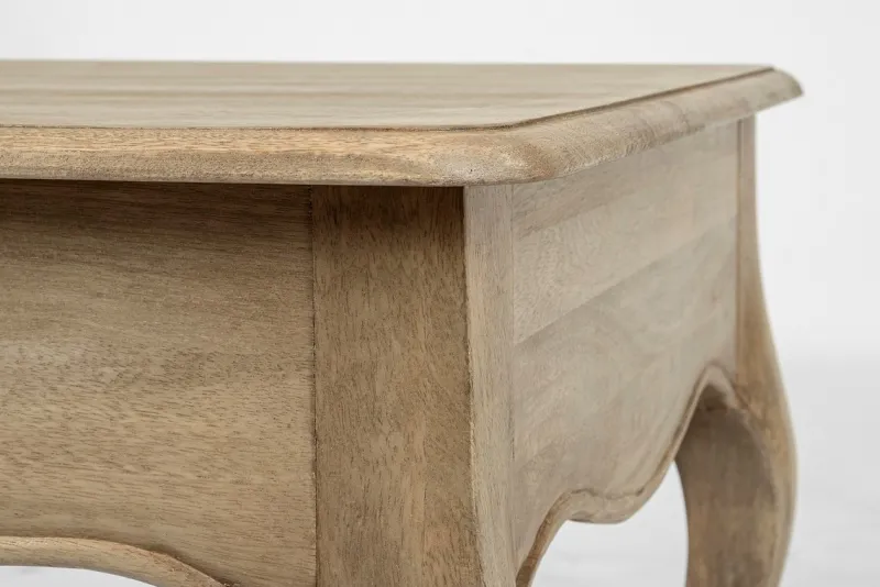 STRUTTURA IN LEGNO DI MANGO, FONDO CASSETTI IN MDF. FINITURA CON VERNICE A BASE D’ACQUA. MANIGLIE IN GHISA. GAMBE DA ASSEMBLARE.