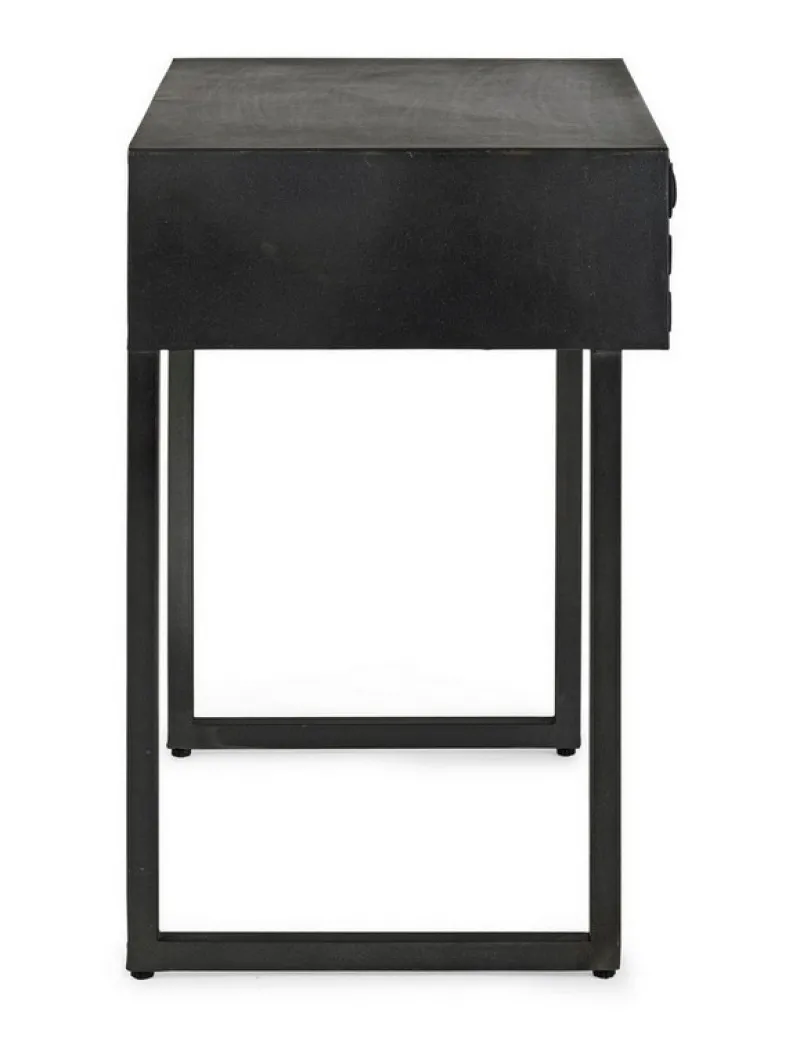 STRUTTURA IN ACCIAIO VERNICIATO A POLVERE EPOSSIDICA. CASSETTI E ANTE IN LEGNO DI MANGO CON FINITURA A BASE DI NITROCELLULOSA.