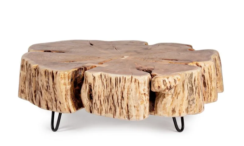 PIANO IN LEGNO DI ACACIA (SEZIONE ORIGINALE DI TRONCO). GAMBE IN ACCIAIO VERNICIATO A POLVERE EPOSSIDICA. FINITURA A BASE DI VERNICE POLIURETANICA. LE FORME CREATE DAL LEGNO SONO INDICATIVE. TUTTI I PRODOTTI SARANNO LEGGERMENTE DIVERSI L’UNO DALL’ALTRO. GAMBE DA ASSEMBLARE.