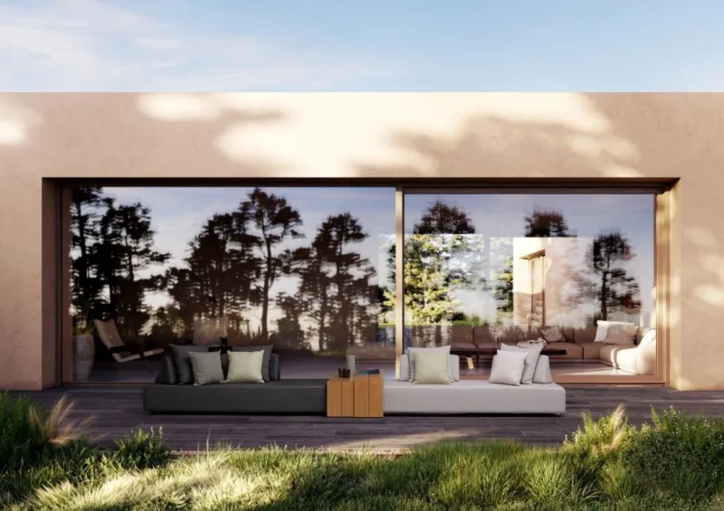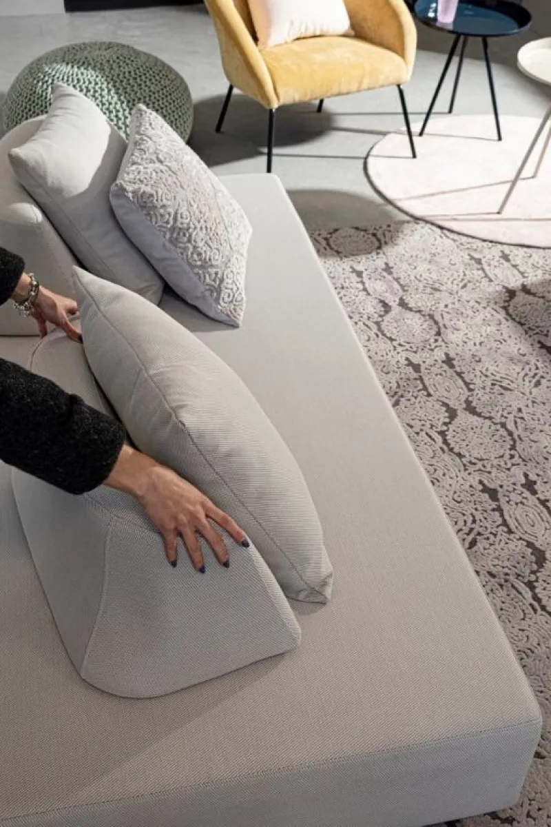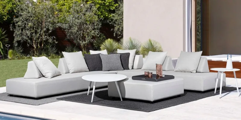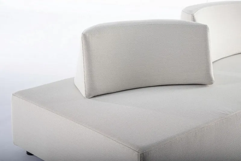 DIVANO CON STRUTTURA IN ALLUMINIO. SCHIENALI REMOVIBILI CON STRUTTURA IN ACCIAIO, GALVANIZZATA A CALDO E VERNICIATA A POLVERE (POLIESTERE). SEDUTA, SCHIENALI E CUSCINI SFODERABILI IN TESSUTO PER ESTERNO OLEFIN (100% POLIPROPILENE, 285GR/M2), IDROREPELLENTE E RESISTENTE AI RAGGI UV (GRADO 7), IMPERMEABILIZZATO INTERNAMENTE CON RIVESTIMENTO IN TESSUTO (POLIURETANO).