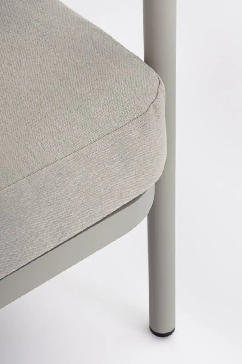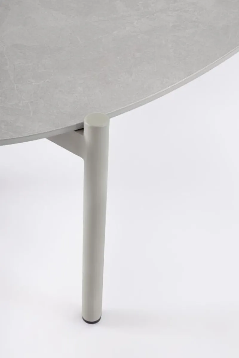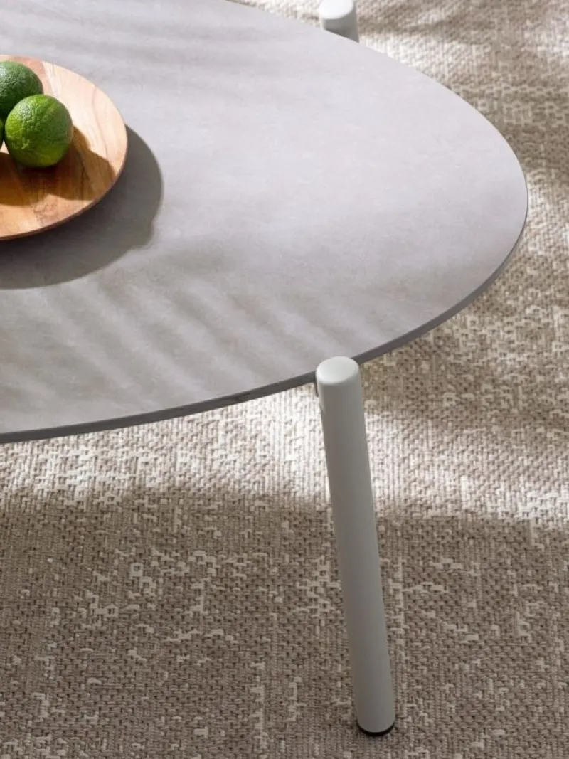 STRUTTURA IN ALLUMINIO VERNICIATA A POLVERE (POLIESTERE). INTRECCIO PER ESTERNO IN CORDA POLIESTERE. PIANO IN PIETRA SINTERIZZATA (PIETRA NATURALE LAVORATA AD ELEVATE TEMPERATURE)(SPESSORE 11MM). CUSCINI SFODERABILI IN TESSUTO IDROREPELLENTE 100% POLIESTERE. VITERIA IN ACCIAIO INOSSIDABILE. TAVOLINO DA ASSEMBLARE.