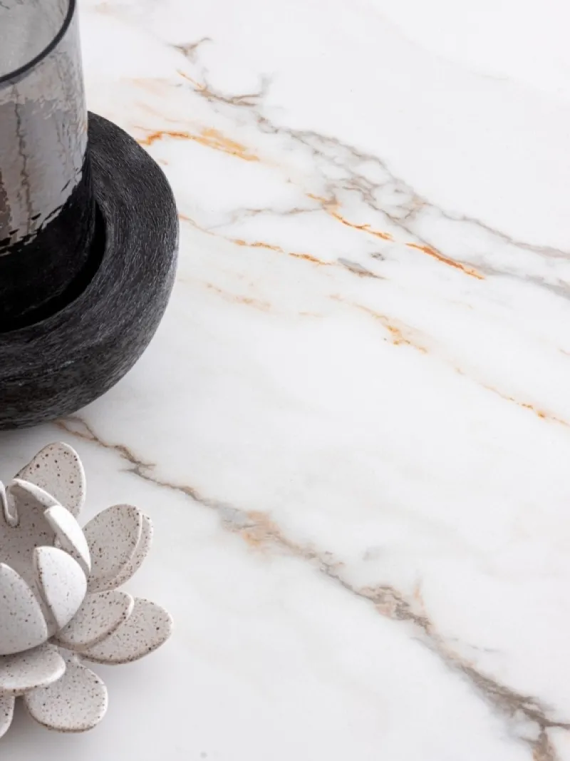 GAMBE E BASE IN ACCIAIO VERNICIATO A POLVERE. PIANO IN CERAMICA E VETRO TEMPERATO. DA ASSEMBLARE.