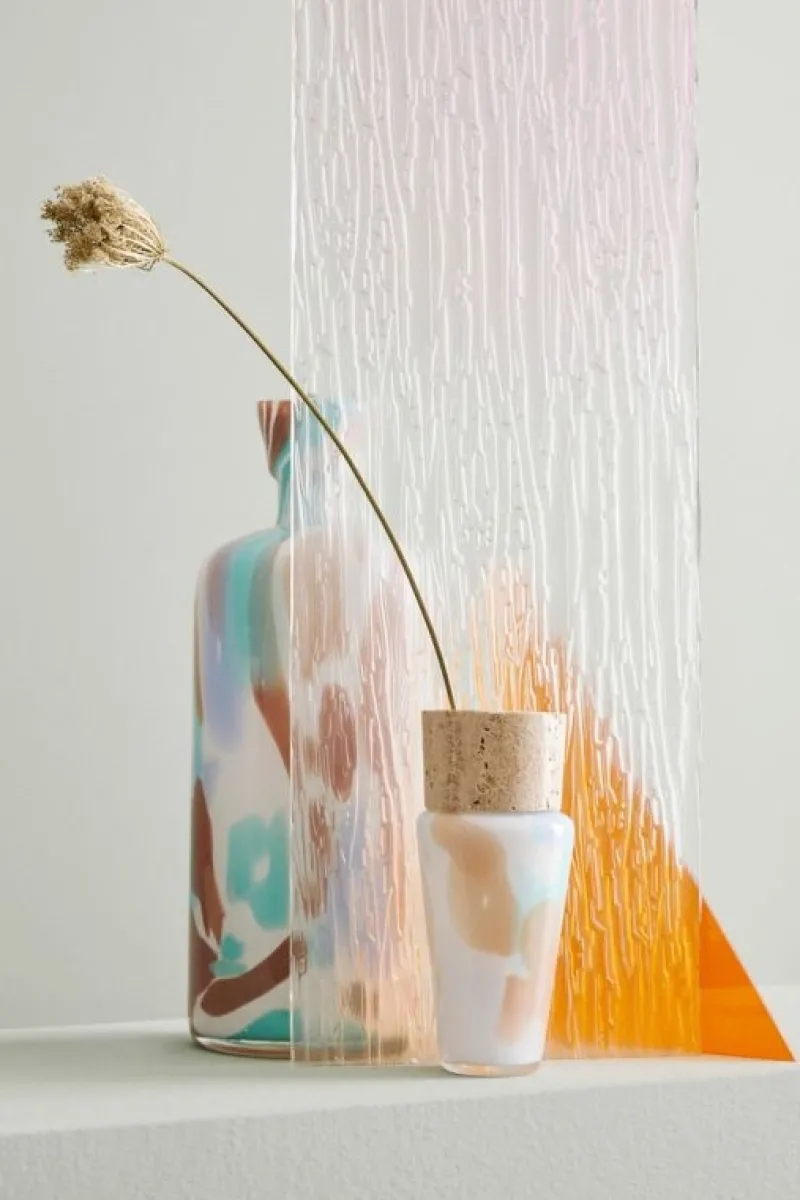 VETRO, TRAVERTINO. PRODOTTO FATTO A MANO. EVENTUALI VARIAZIONI DI COLORE, TONALITÀ O IMPERFEZIONI SONO DA CONSIDERARSI UNA CARATTERISTICA DI UNICITÀ. SOLO PER USO DECORATIVO.