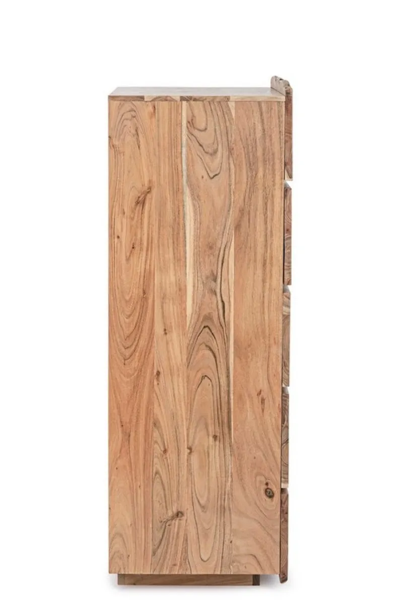 LEGNO DI ACACIA. FINITURA A BASE DI VERNICE POLIURETANICA. FRONTALE CASSETTO CON BORDI IRREGOLARI (EFFETTO LEGNO VIVO). ESSENDO LAVORATO A MANO, LE FORME E LE MISURE DEL LEGNO SONO SOLO INDICATIVE. TUTTI I PRODOTTI SARANNO DIVERSI L’UNO DALL’ALTRO.