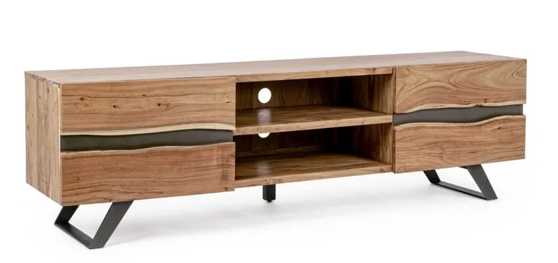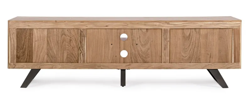 STRUTTURA IN LEGNO DI ACACIA, GAMBE IN ACCIAIO VERNICIATO A POLVERE EPOSSIDICA. PORTE CON INSERTI IN METALLO. FINITURA A BASE DI VERNICE POLIURETANICA. GAMBE DA ASSEMBLARE.