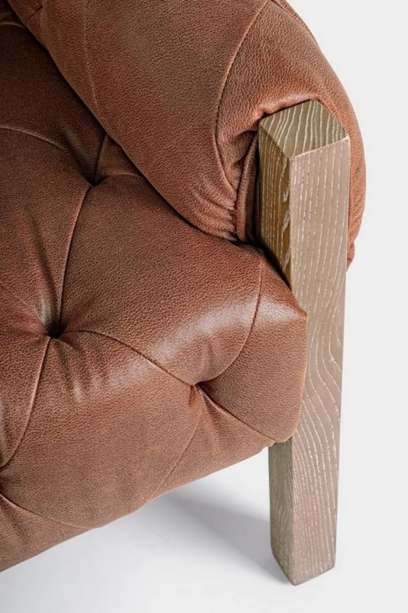 STRUTTURA IN LEGNO DI FRASSINO, RIVESTIMENTO IN SIMILPELLE (PU) E LAVORAZIONE A CAPITONNE’. DENSITA’ IMBOTTITURA IN SCHIUMA POLIURETANICA SEDUTA 30KG/M3, SCHIENALE 25KG/M3.