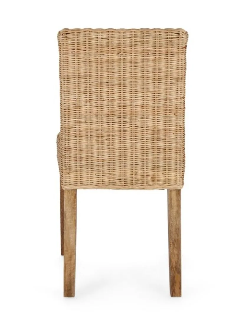 STRUTTURA IN LEGNO DI MANGO, INTRECCIO IN RATTAN. FINITURA A BASE DI NITROCELLULOSA. SOLO PER USO INTERNO. IMBALLO SENZA CARTONE.